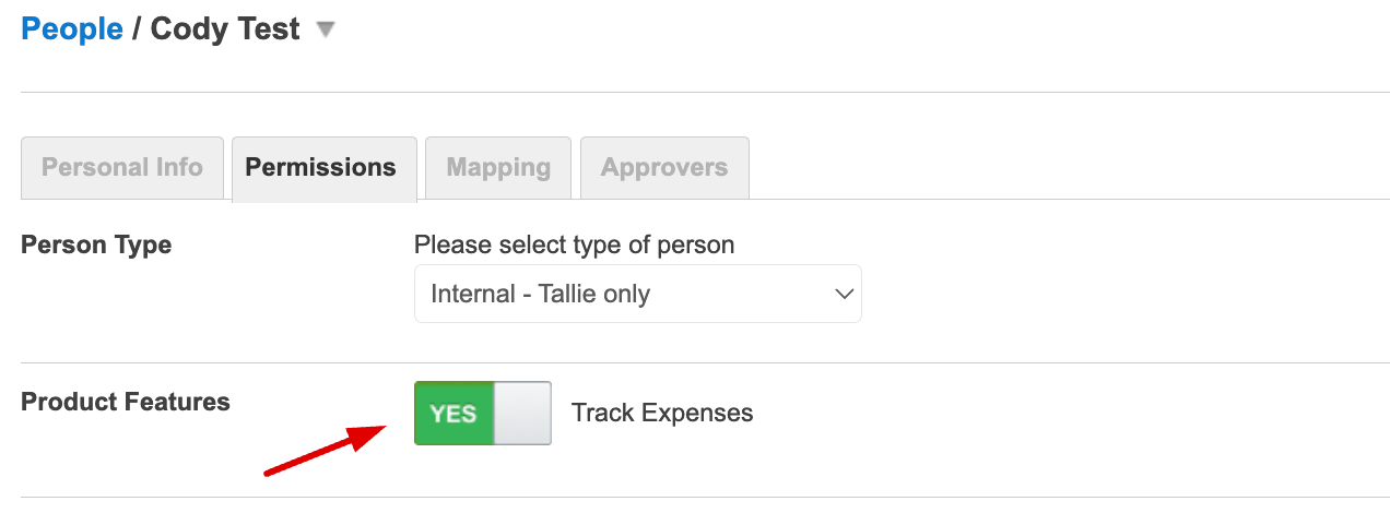 Step 6: Ensure the Track Expense permission is toggled to Yes. Click Save.
