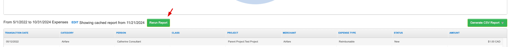 You must click the Rerun Report button to generate a report with accurate transaction data, as it will automatically clear data stored in your cache. The button will disappear once it no longer detects previously stored data in the browser's cache.